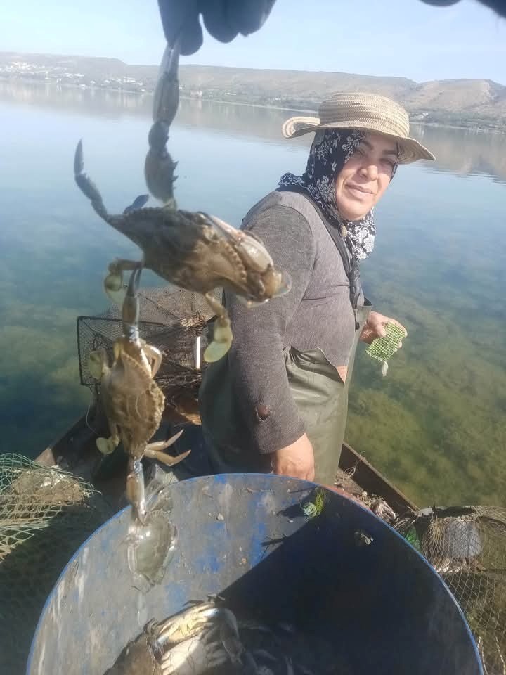 على قارب صغير اختارت الفة أن تتكيّف مع التغيرات المناخيّة وإن تصارع وحدها ” داعش ” او السلطعون الأزرق”، الكابوس الذي ارهق الصيادين بسبب ارتفاع درجات الحرارة في البحر المتوسط الناتج عن تغير المناخ.  سمّي هكذا لسلوكه العدواني ومهاجمته الأسماك والصيّادين. غزا داعش بحيرة غار الملح  وأثر سلبا على مصائد الأسماك التقليديّة التي تعدّ مصدر دخل أساسي للكثير من العائلات  . تقول ألفة في حديثها لمنصة كوسموس ميديا: ” في الماضي القريب كنت اصطاد ” القرنج الأخضر” و التريليا والقمبار باستعمال الشباك ، تراجعت الثروة السمكية في البحيرة  ولكن عندما أتى السلطعون الأزرق لم يبقى لنا شيئا ، وتراجع المكسب  ومنينا بخسائر كبيرة”