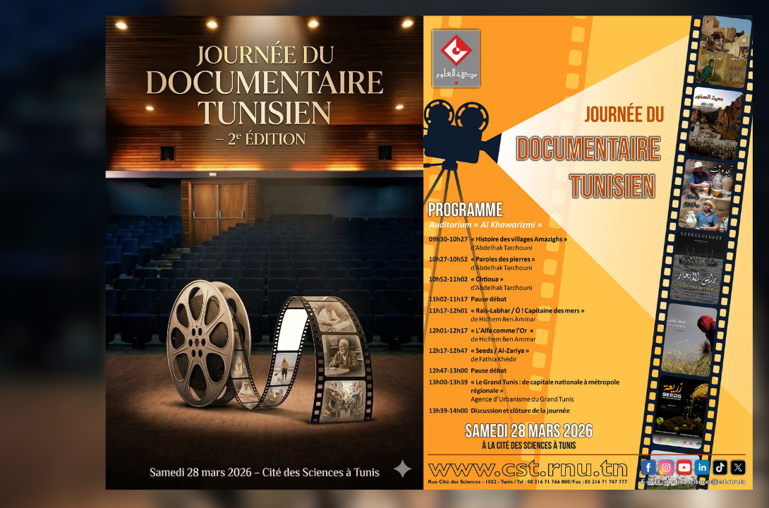 احتضنت مدينة العلوم بتونس فعاليات الدورة الثانية لـ “يوم الفيلم الوثائقي التونسي”، في إطار برنامجها العلمي لسنة 2026، في خطوة تعكس توجّهًا متناميًا نحو إدماج الإنتاجات الوثائقية في الفضاء العلمي والثقافي.